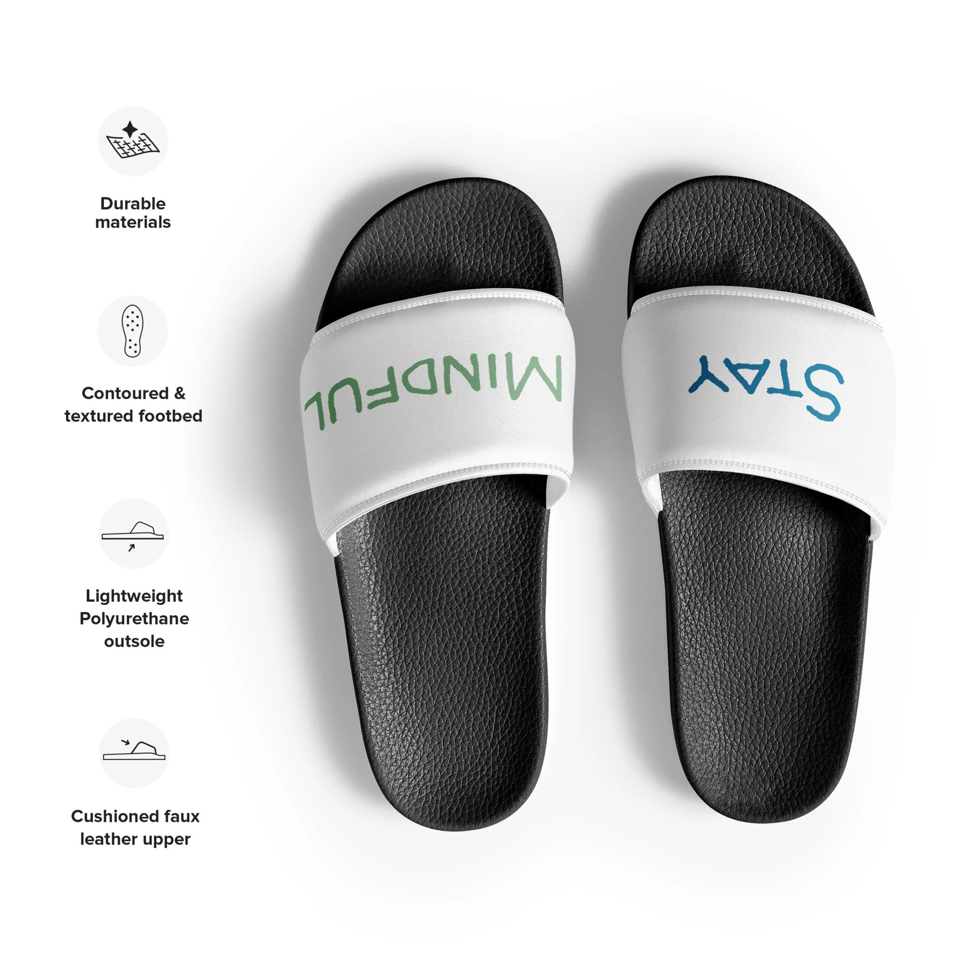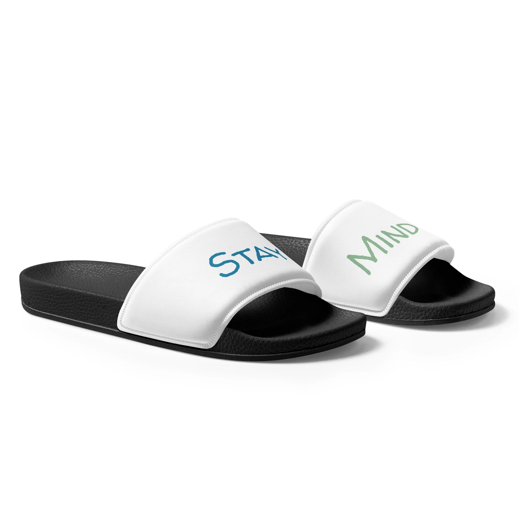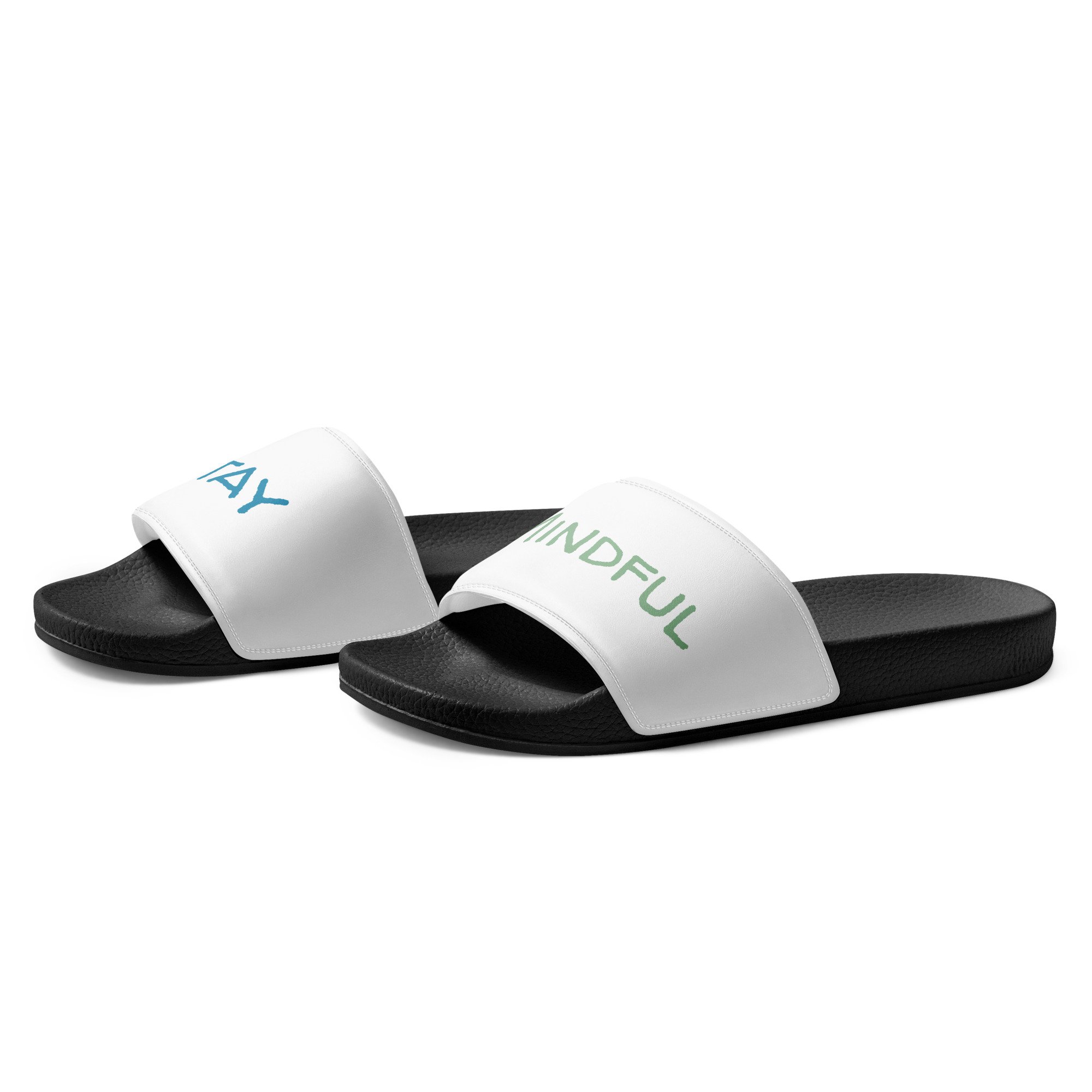 Move through the season with comfort, confidence, and intention. The MindfulTee Stay Mindful Slides for women are designed to keep your style effortless while carrying a message that matters. Featuring the reminder Stay Mindful, these slides represent staying grounded, aware, and kind in a fast-moving world.