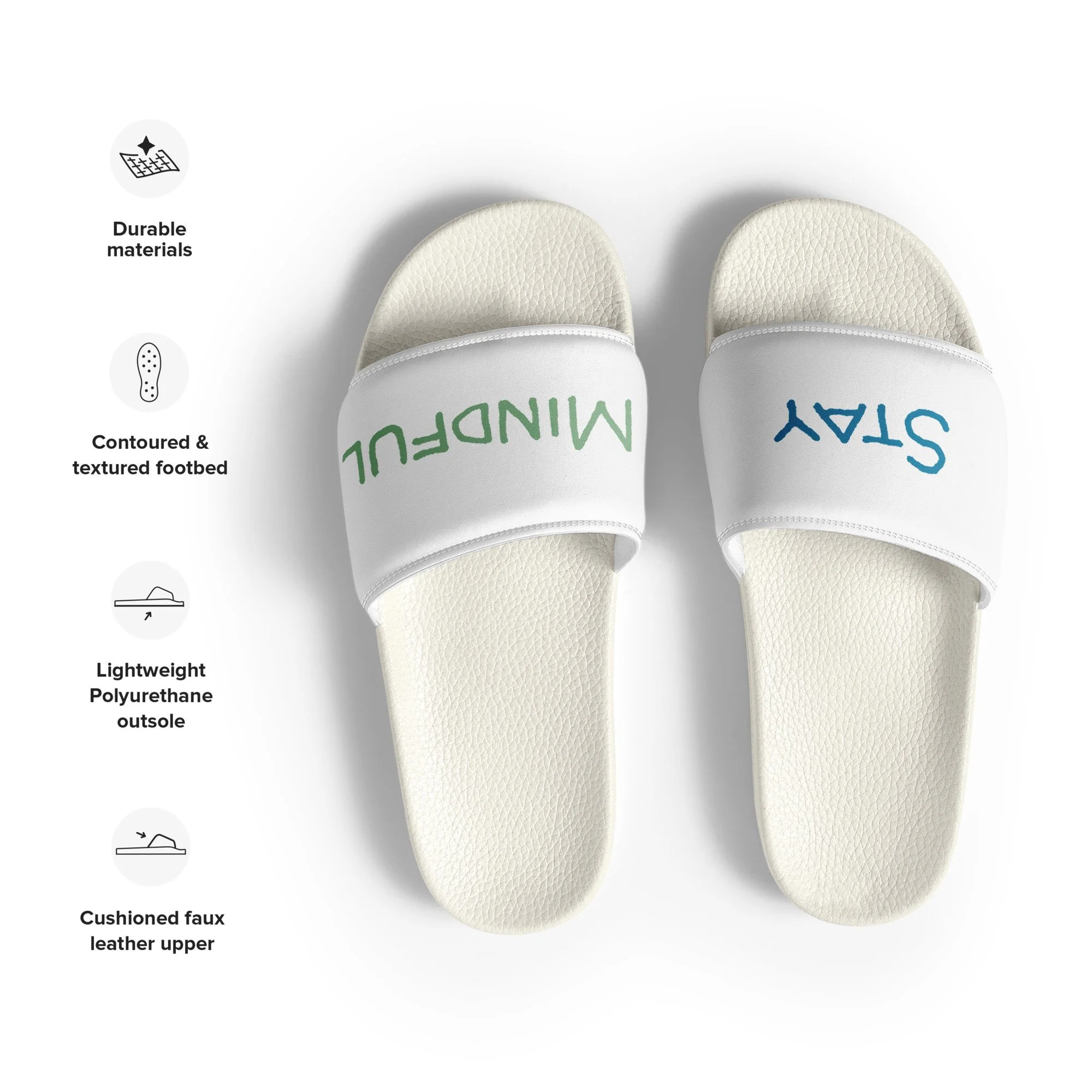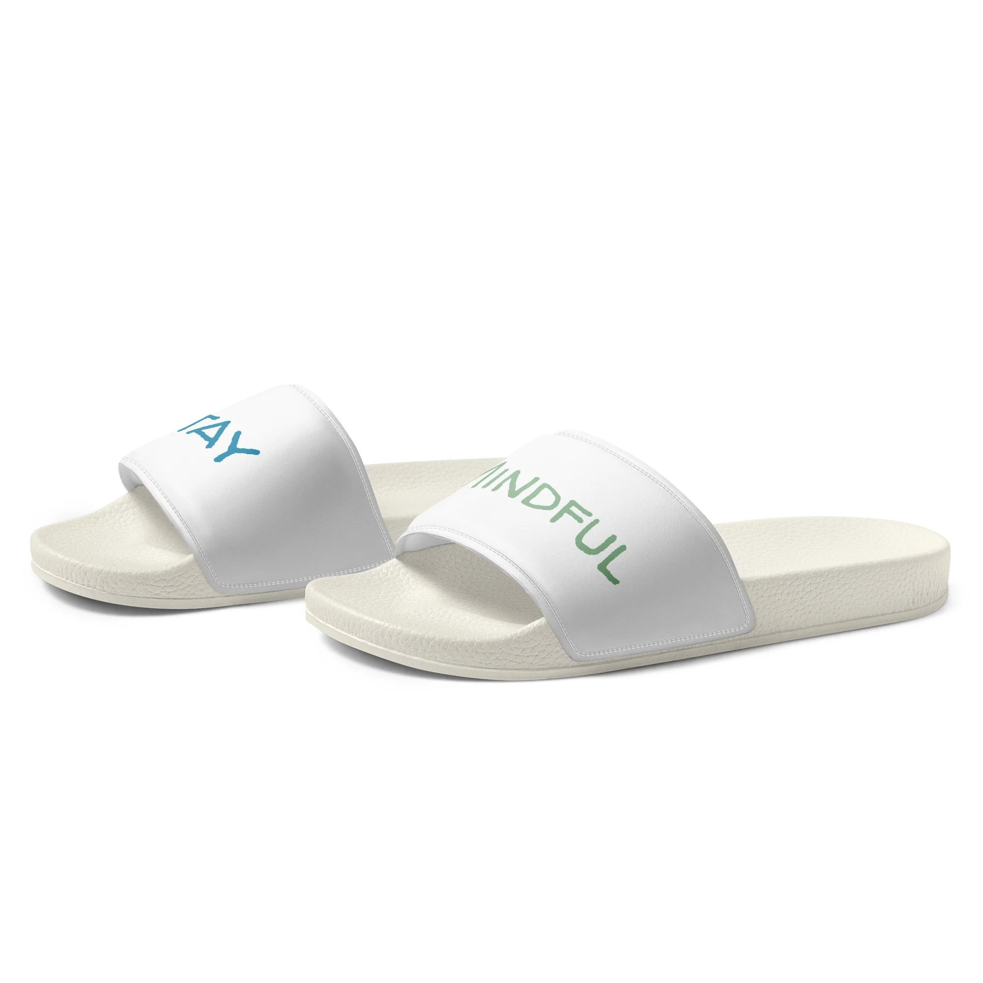 Move through the seasons with comfort, confidence, and intention. The MindfulTee Stay Mindful Slides for men are designed to keep your style effortless while carrying a message that matters. Featuring the reminder Stay Mindful, these slides represent staying grounded, aware, and kind in a fast-moving world.